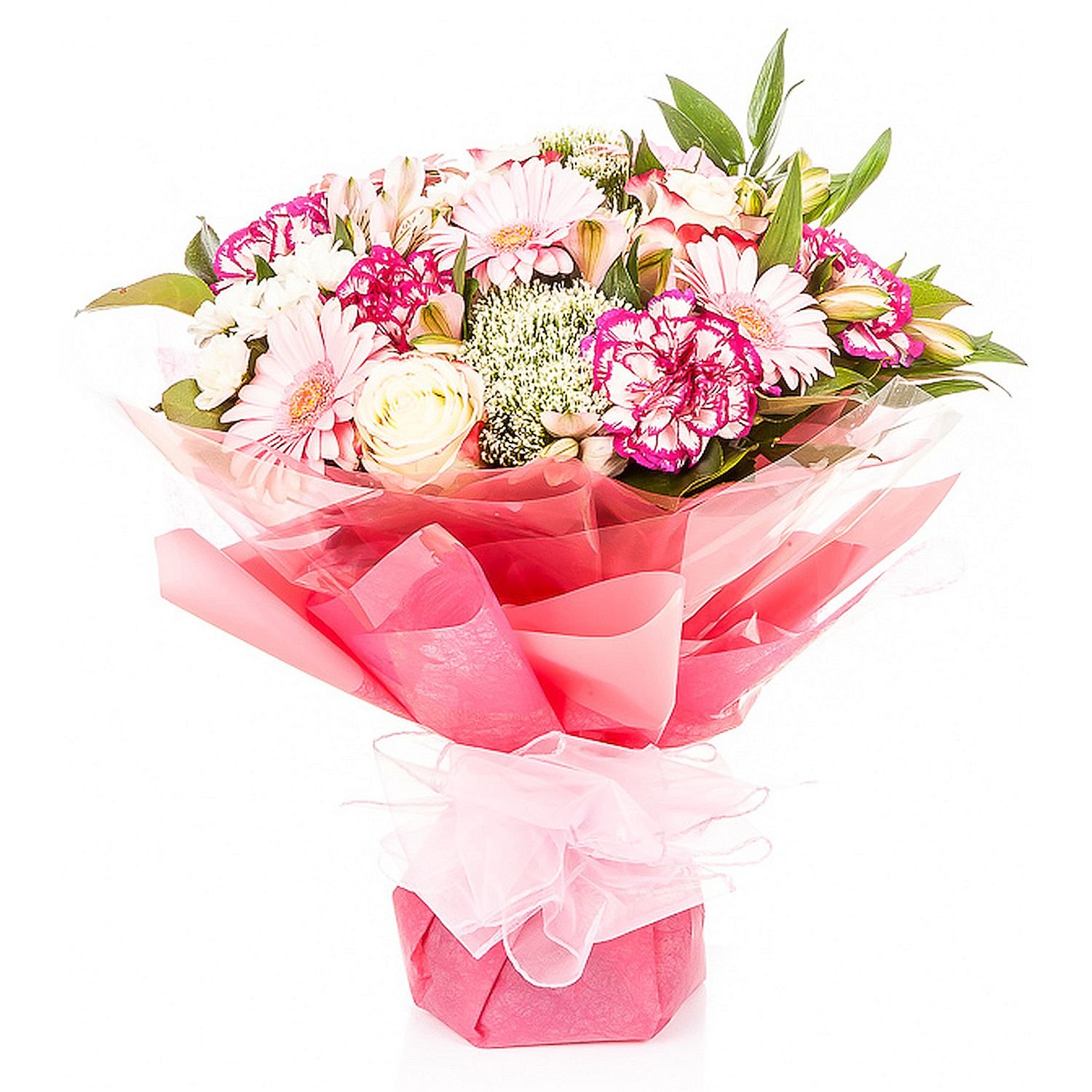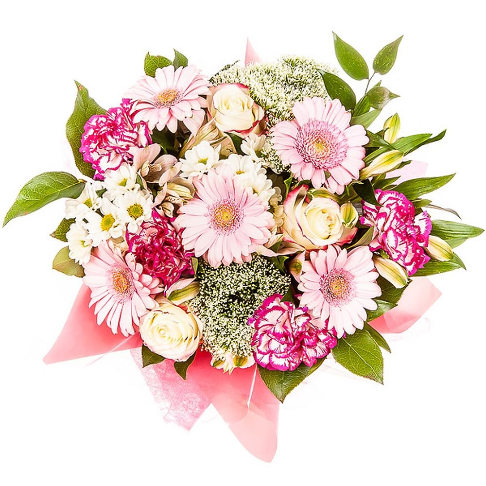 Táto svieža kytica v ružových a bielych tónoch v sebe nádherne spája eleganciu a hravosť. Jemné chryzantémy, farebné karafiáty i originálne gerbery vzájomne vynikajú a dodávajú aranžmánu svieži a optimistický nádych. Vďaka nežným farbám kytica pôsobí veľmi prívetivo a romanticky, výborne sa hodí na narodeniny, výročia či potešenie milovanej osoby. Štýlové balenie podčiarkuje jedinečnosť celého daru a zaručuje príjemný dojem pri predaní. Doručujeme v deň objednávky počas pracovných dní, zároveň si môžete zvoliť presný čas doručenia a dostanete od nás potvrdenie o doručení e-mailom. Naše kytice vždy viažeme s maximálnou starostlivosťou našimi skúsenými floristikmi.